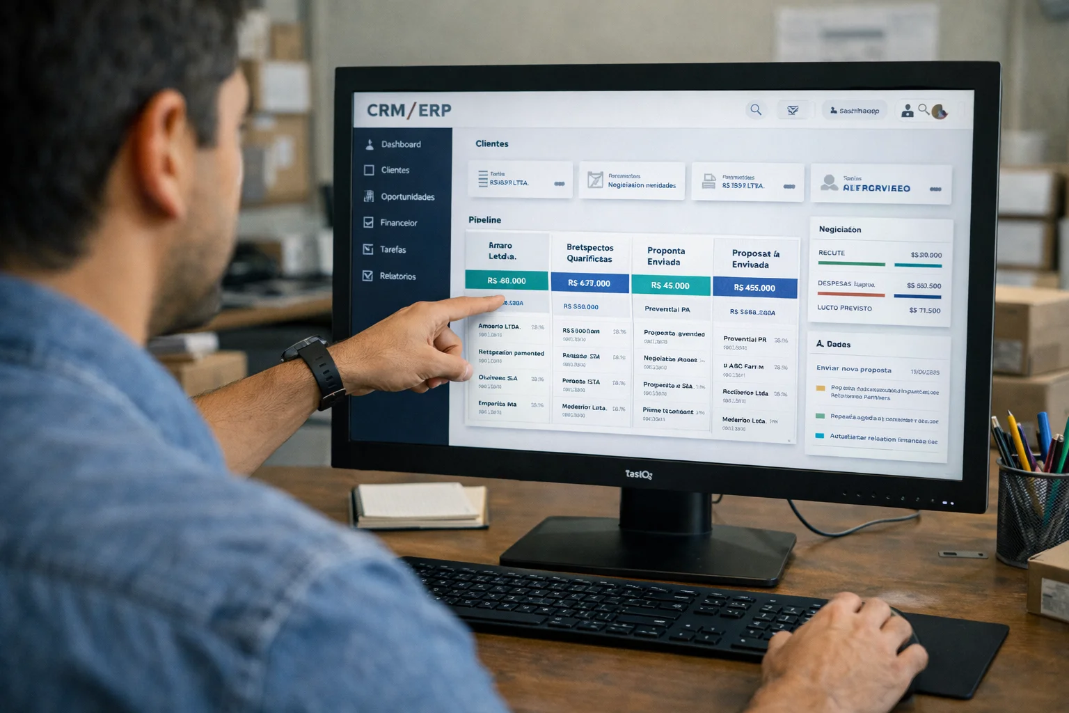 Acompanhe contatos, negociações, clientes, histórico comercial e oportunidades de forma organizada e adaptada ao seu processo.